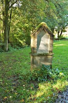 Unbedeutend und vielleicht auch manchmal übersehen, findet man hinter dem Künstlerdorfensemble auf der Rückseite des Literaturhofes ein Denkmal, das so wohl auch gewollt von dem Künstler dort platziert wurde. Im Rahmen der Skulptur-Biennale 2005, als dieses Kunstwerk entstanden ist, hat der Künstler vergessene Denkmäler, Restsockel oder abgewetzte Bildstöcke aus ihrer "verborgenen Geschichte" entrissen. Ein kleiner Eingriff des Künstlers – wie hier die Aluplatte vor dem total verwitterten Innenteil des Bildstockes - soll sie wieder in das Bewusstsein der Öffentlichkeit hineinbringen. Die Inschrift bzw. die Darstellung des Bildstockes sind dem alltäglichen Blick entzogen und motivieren so den Betrachter wieder verstärkt über sie nachzudenken.