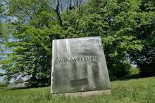 Ein Kubus, rostig, mit eingravierten Schriften und mit einem Eigenleben, das sich erst offenbart, wenn der Betrachter sich dieser Skulptur nähert. Hinter dem Literaturhof des Künstlerdorfes hat der Künstler sein Werk „Auf das Leben!“, so der Titel der Arbeit von Timm Ulrichs, im öffentlichen Raum vorgestellt. Der Titel ist ein alter jüdischer Trinkspruch. Er ist auf der Skulptur in hebräischer, deutscher, englischer und russischer Sprache und Schrift zu lesen.